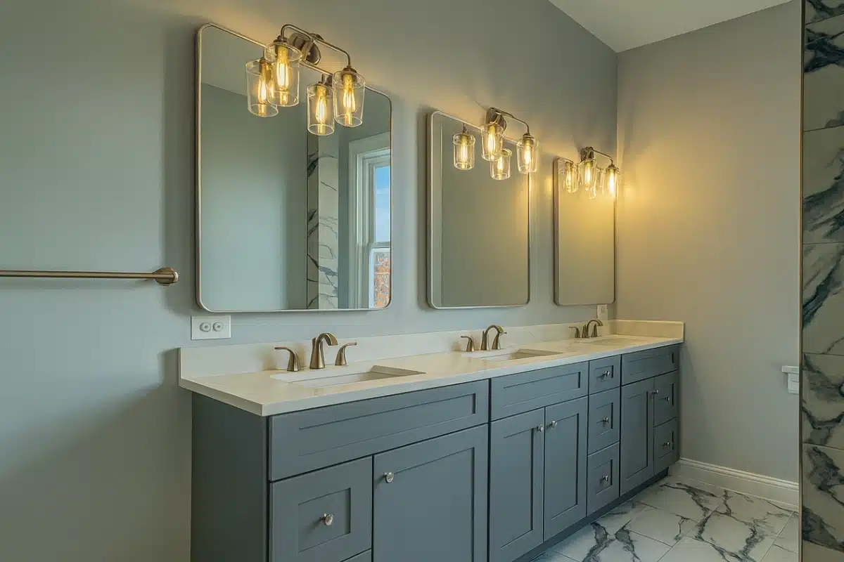 We cut razor-sharp lines where walls meet trim, ceilings, and bathroom cabinet installation areas, this takes steady hands and quality brushes, not just painter’s tape. We paint trim in colors that complement your walls: white trim brightens small bathrooms, while matching trim to walls makes ceilings appear higher in cramped spaces.